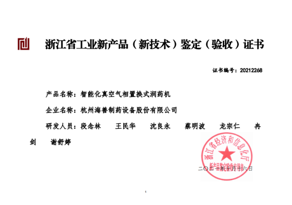 2021年9月28日在杭州富陽召開了關(guān)于杭州海善制藥設(shè)備股份有限公司研究設(shè)計生產(chǎn)的“高精度智能化直線往復(fù)式切藥機”和“智能化真空氣相換置式潤藥機”的省級工業(yè)新產(chǎn)品鑒定會,會議由富陽區(qū)經(jīng)濟和信息化局馬春風(fēng)科長主持,參會的行業(yè)專家有輕工業(yè)自動化研究所智能制造正高級工程師薛根、浙江省醫(yī)學(xué)科學(xué)院藥理學(xué)研究員應(yīng)華忠、浙江科技學(xué)院機械專業(yè)教授宋德玉、浙江省能源研究所自動化教授級高工周鑫發(fā)、浙江農(nóng)林大學(xué)竹類資源機械加工教授錢俊,我司總經(jīng)理張燕群和技術(shù)部經(jīng)理段念林參會就兩項產(chǎn)品進行專家答復(fù)。